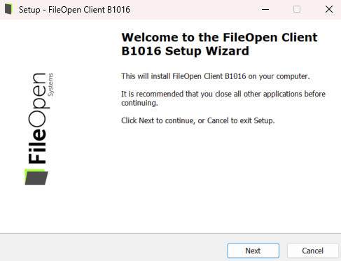 - From downloads, open the FileOpenInstaller.exe file and follow the prompts to install